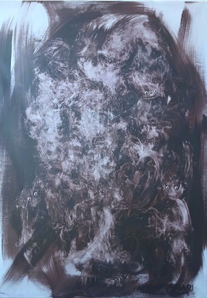 Bővebbenfejez ki képileg. Valósághű és stilizált alakokból életszerűséget nyer ki, és a műveken belül létrejönnek a műség fokozatai. A plüssfigurák képi alkotóelemként 2007 óta jelen vannak nála, a témától el nem szakad, de vannak kitérők.